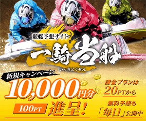 予想サイト「一騎当船」は専属予想師と分析班による高精度な情報を毎日お届け!初心者にも安心の24時間いつでもLINE相談OKです。さらに初回登録でもらえる「1万円分のポイント」あり!